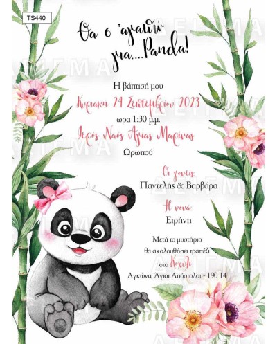 Προσκλητήριο βάπτισης για κορίτσι με θέμα Baby Girl Panda.