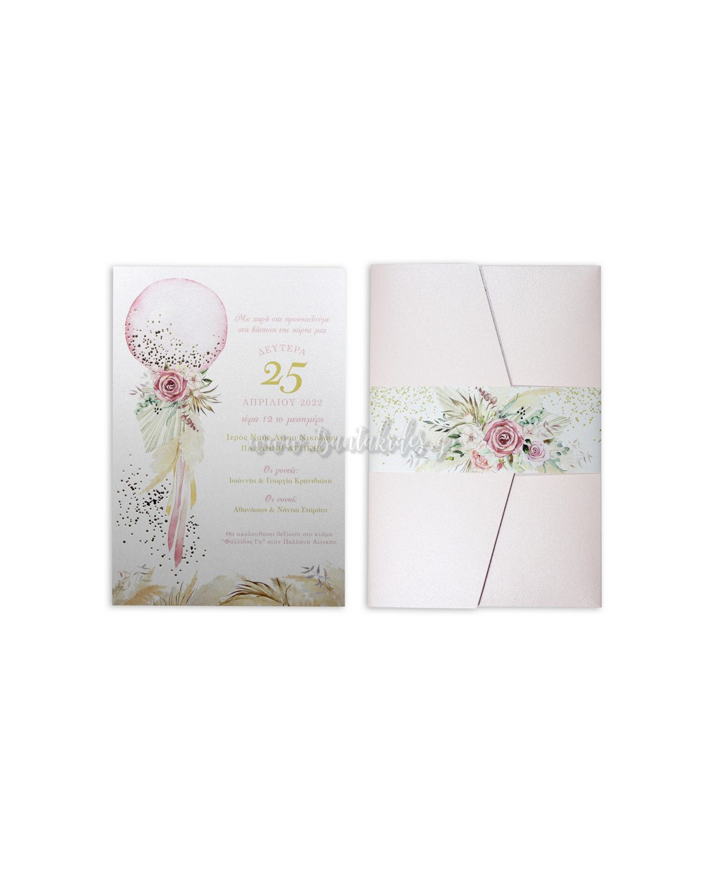 1831 No103K Προσκλητήριο Βάπτισης Λουλούδια για Κορίτσι