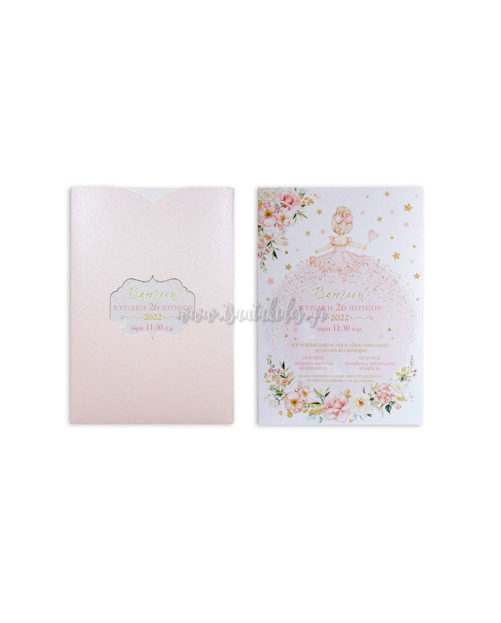 1847 No108Κ Προσκλητήριο Βάπτισης Κοριτσάκι Αστέρια