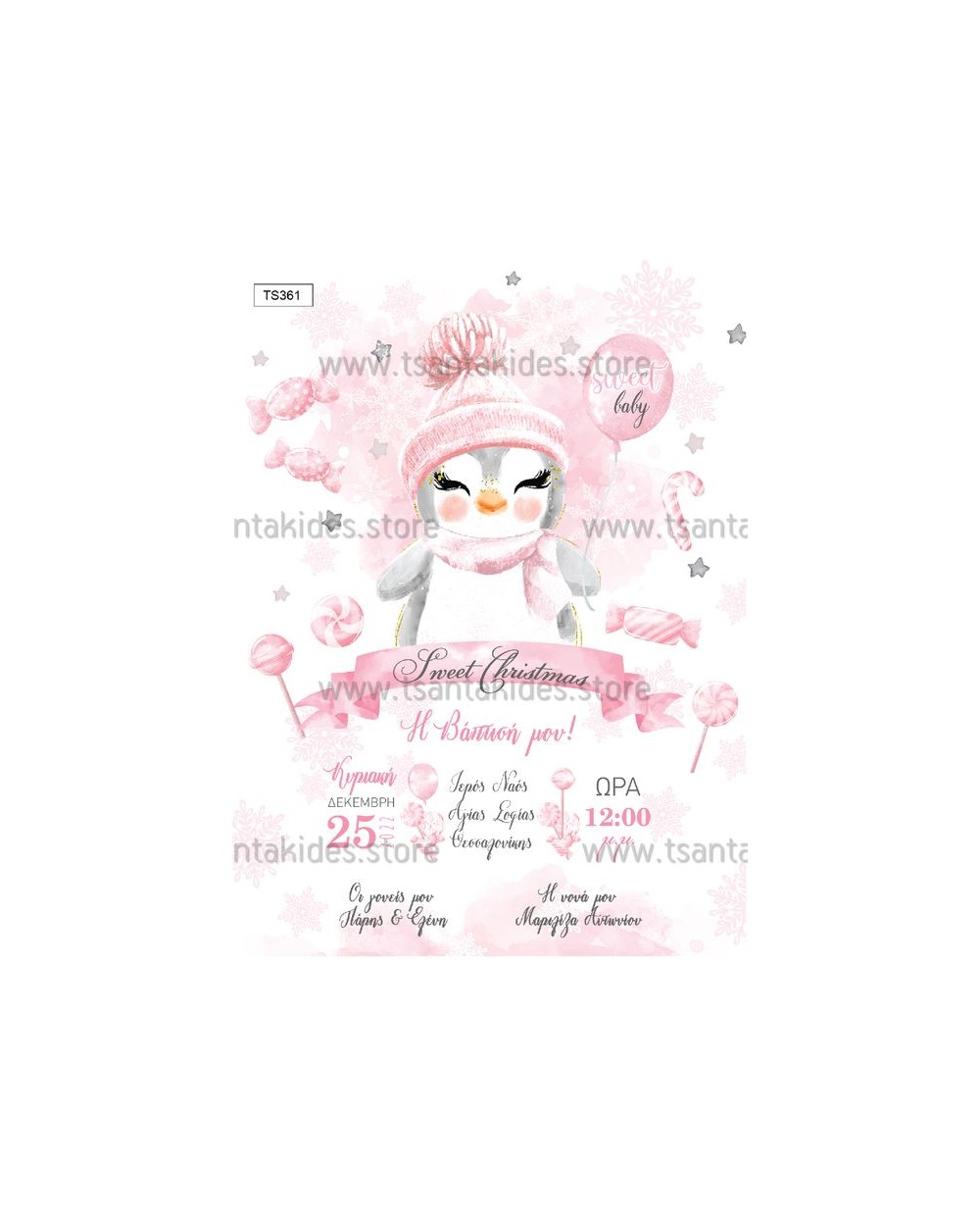 TS361-NO91K XMAS Χριστουγεννιάτικο Προσκλητήριο Πιγκουίνος