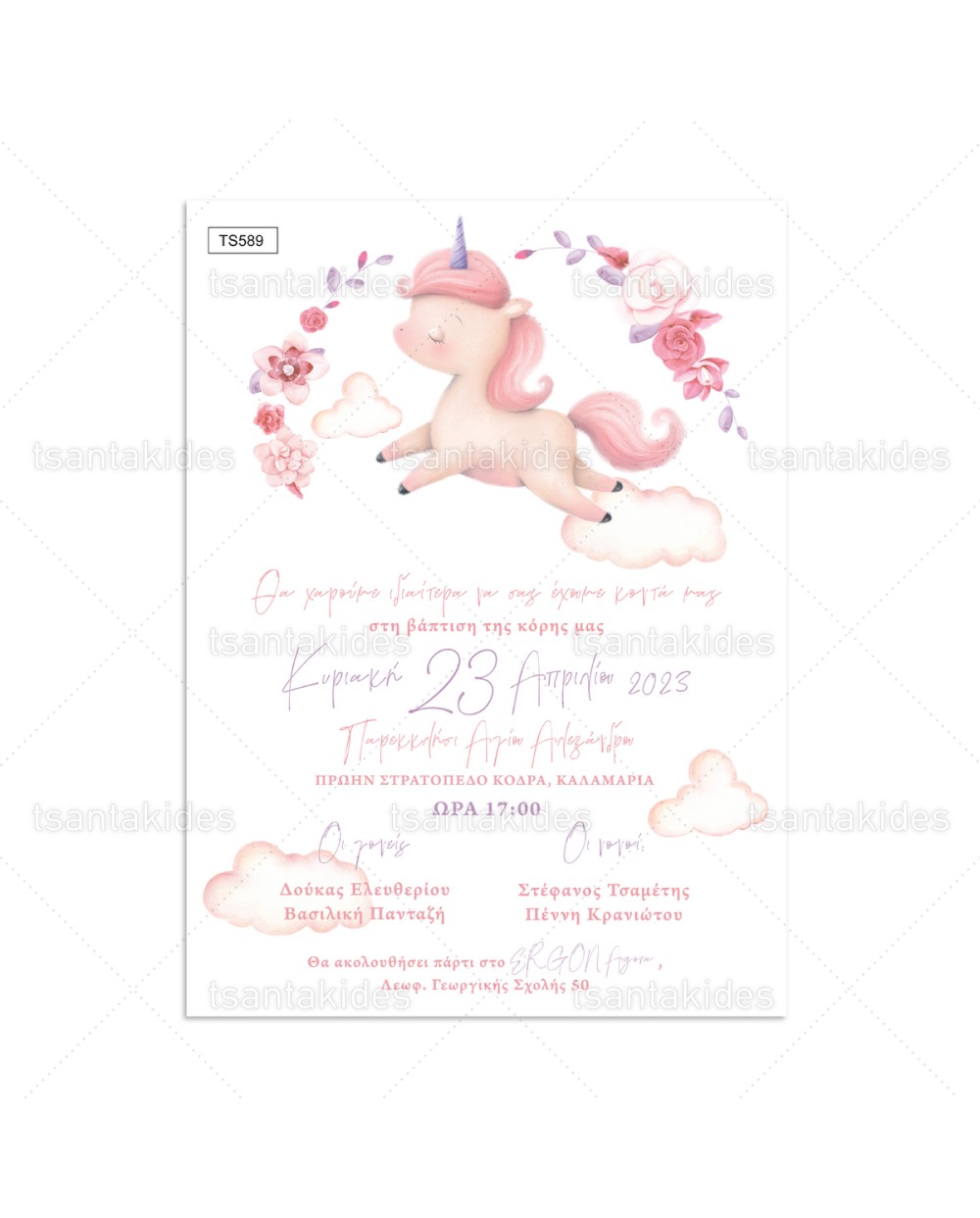 (TS589) Προσκλητήριο Βάπτισης Μονόκερος Dreamland Unicorn