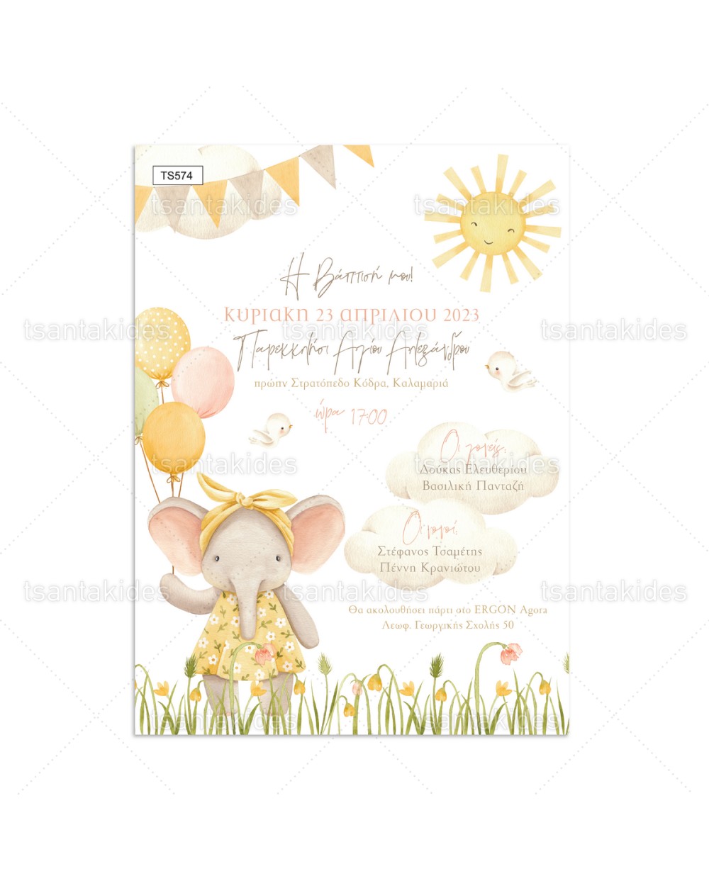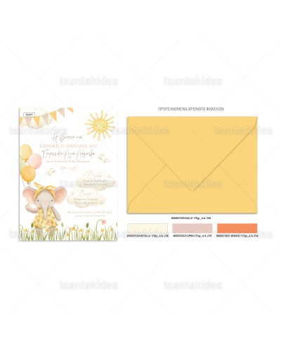 (TS574) Προσκλητήριο Βάπτισης Ελεφαντάκι Ήλιος