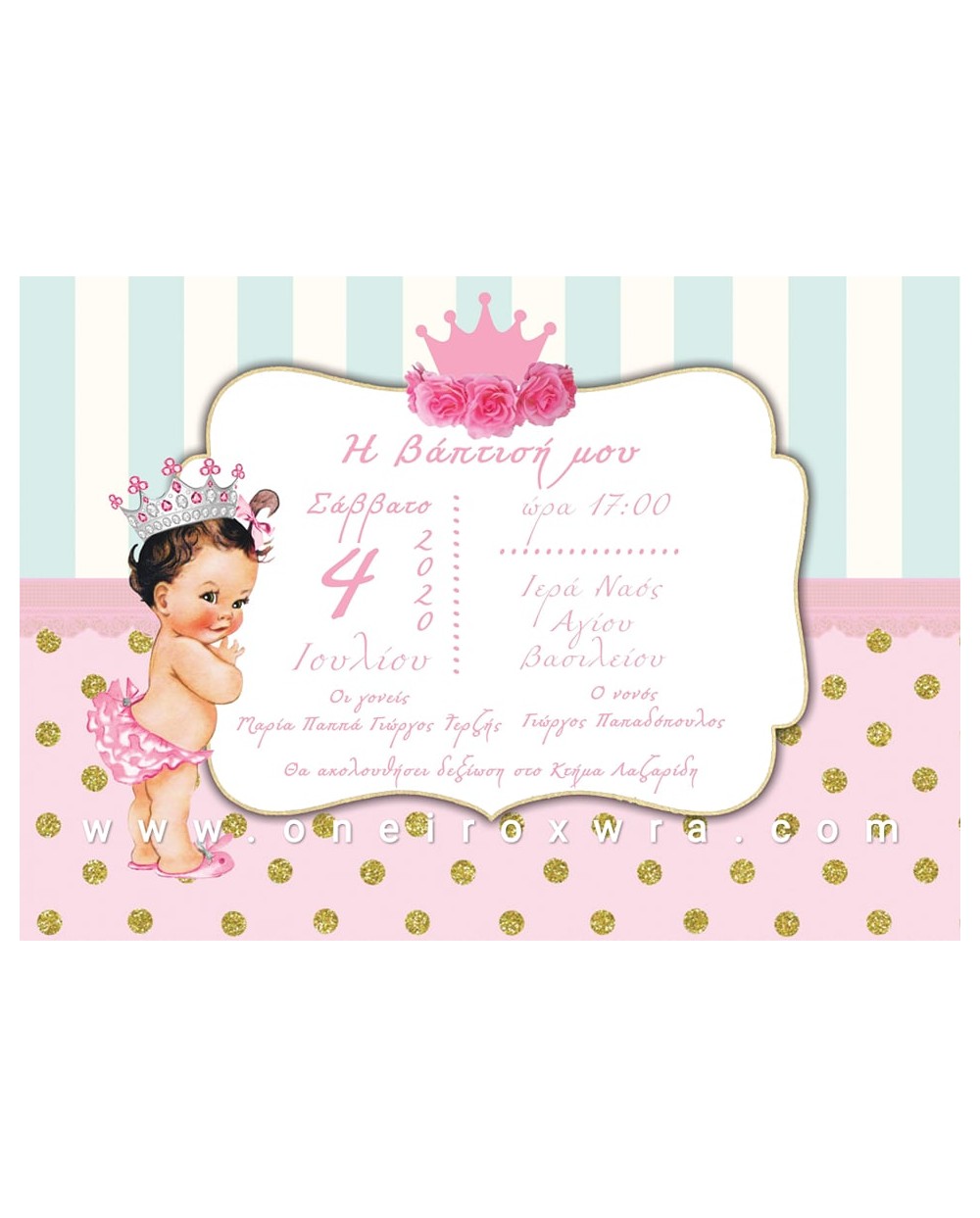 Προσκλητήριο Βάπτισης Μπεμπούλα Πριγκιπισσούλα Ροζ - Μέντα - Σάπιο Μήλο
