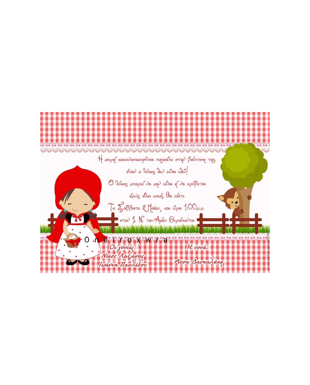 Ηλεκτρονικό Προσκλητήριο Βάπτισης Κοκκινοσκουφίτσα 1