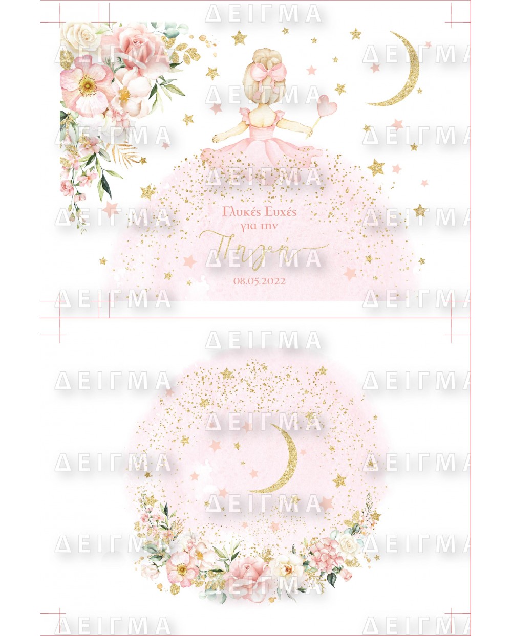 1847-ΝΟ103Κ Βιβλίο Ευχών Κοριτσάκι, Φεγγάρι, Αστέρια