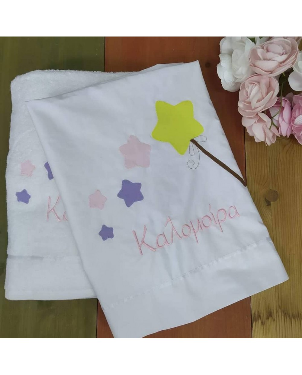 Λαδόπανα Βάπτισης Ραβδάκι με Αστέρια με Κεντημένο Όνομα