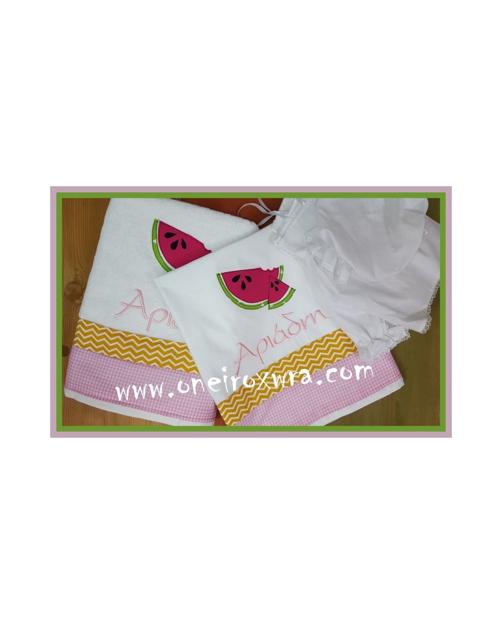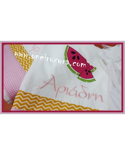 Λαδόπανα Βάπτισης Καρπούζι με Κεντημένο Όνομα