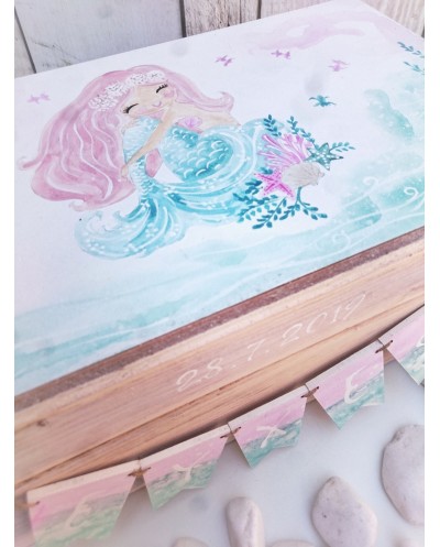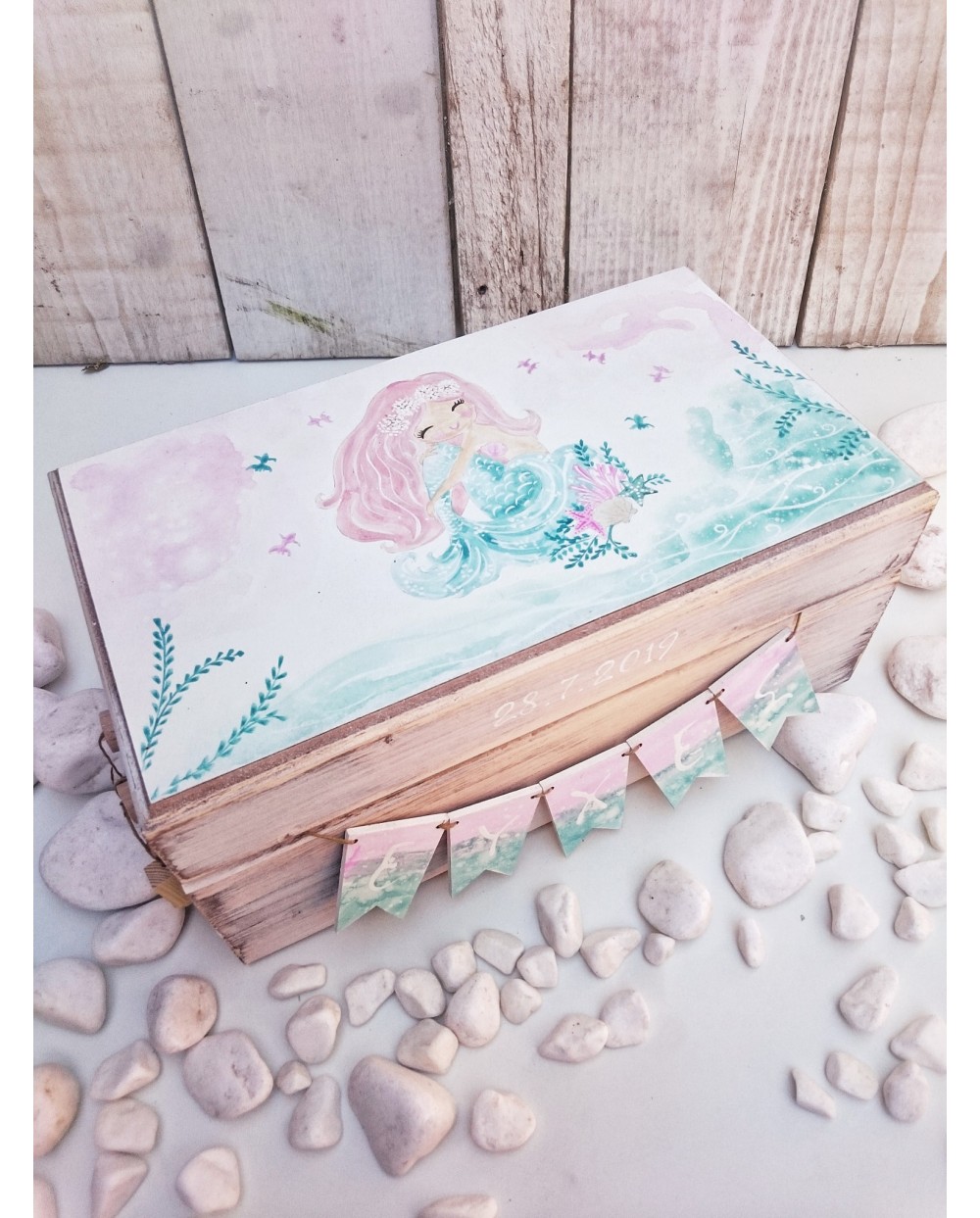Ξύλινο Κουτί Ευχών Γοργόνα, ζωγραφισμένο στο χέρι