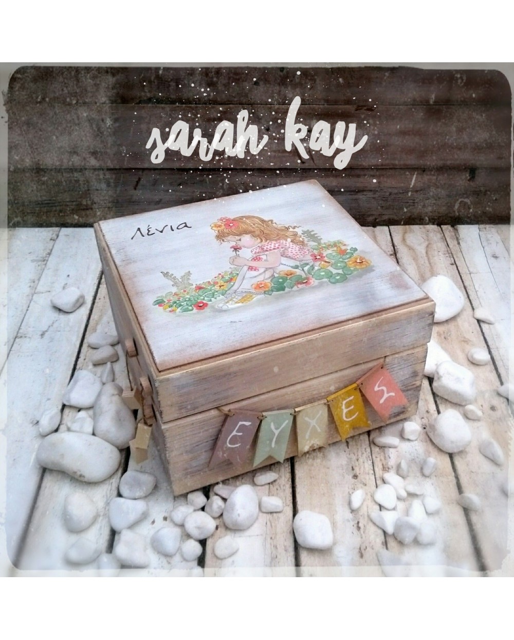 Ξύλινο Κουτί Ευχών Sarah Kay Λένια, ζωγραφισμένο στο χέρι