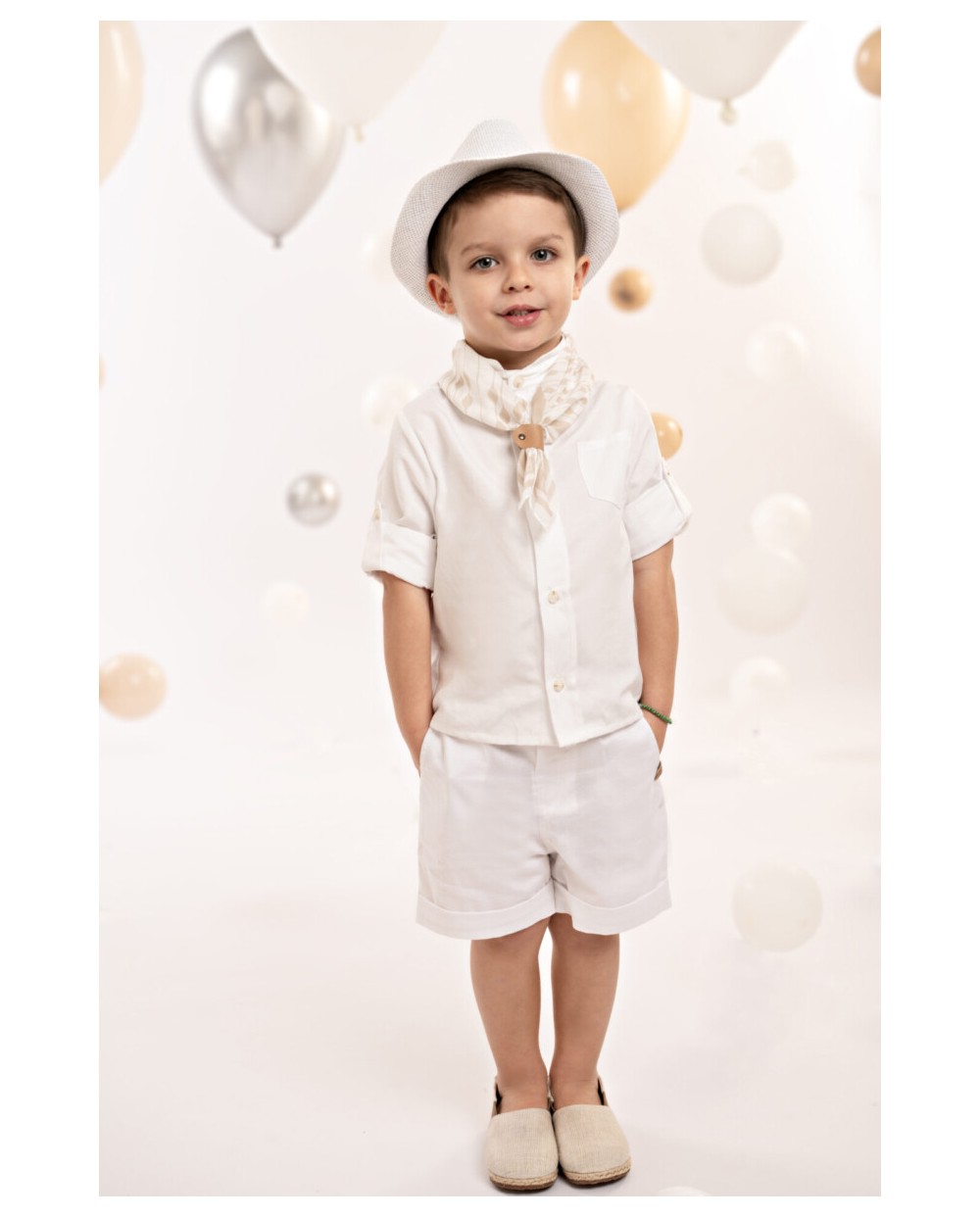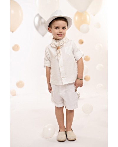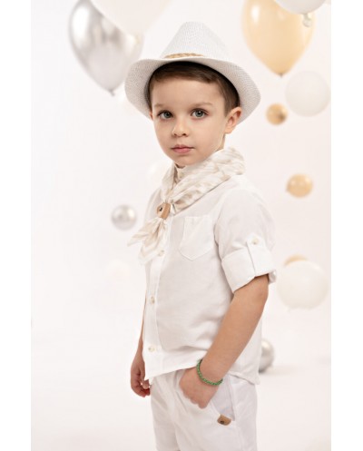 Ένα μοντέρνο σύνολο με καλοκαιρινή αύρα και υπέροχο design που αποτελείται από βερμούδα σε loose γραμμή από tencel-cotton-lino ύφασμα και βαμβακερό πουκάμισο σε off white απόχρωση με πολύ ιδιαίτερο Mao γιακά και εξωτερικό τσεπάκι. Το σετ συμπληρώνει άψογα το personalized βουάλ φουλάρι με τα γεωμετρικά σχέδια σε μπεζ απόχρωση και το ψάθινο καπέλο (ή τραγιάσκα κατά επιλογή).