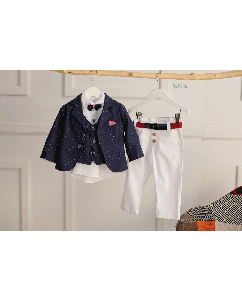 Vinteli 5213 Βαπτιστικό Ρούχο για Αγόρι 2023 Λευκό - Βεραμάν 40%LI 35%RAY 25%CO