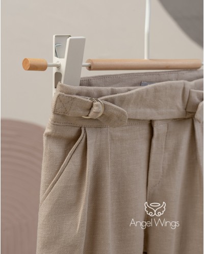 Γιλέκο με «έξυπνο» και παιχνιδιάρικο κλείσιμο μπροστά από ένα μοναδικό γκοφρέ πλεκτό βαμβακερό ύφασμα σε εκρού χρώμα. Πουκάμισο από 100% βαμβακερό ύφασμα σε εκρού χρώμα με κλασσικό γιακά. Παντελόνι σε νέα baggy γραμμή, δίπιετο με μπάσκα και πολύ ιδιαίτερη ζώνη από υπέροχο μαλακό ύφασμα λινό-βισκόζη στους τόνους του μπεζ.