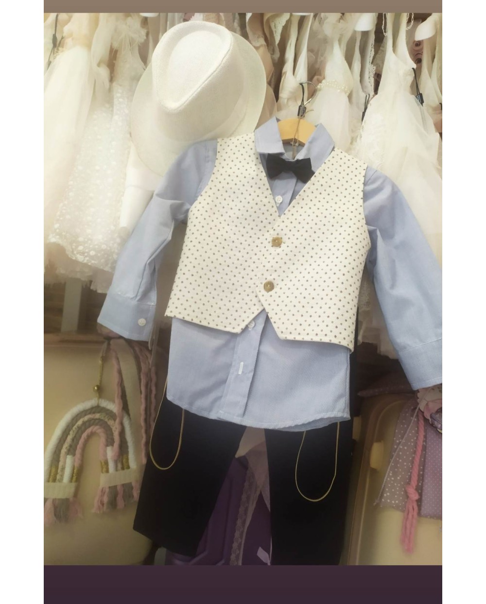 No2 Mak - Βαπτιστικό Ρούχο Αγόρι Πουά Γιλέκο