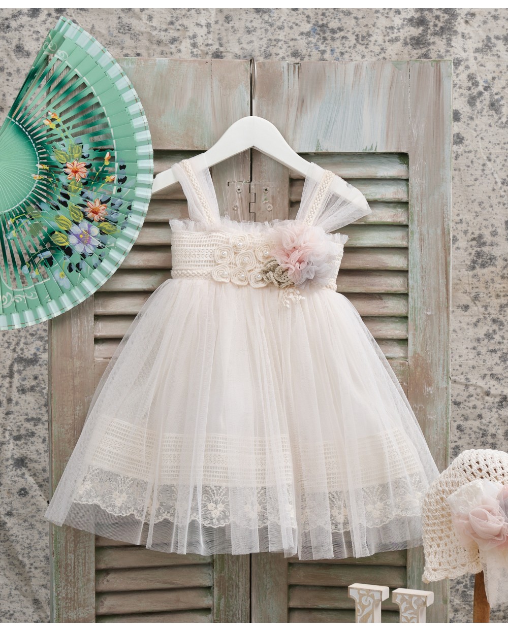 Felicita F2015.702021 - Βαπτιστικό Φόρεμα - Μπαντάνα - Βανίλια - Λουλούδια