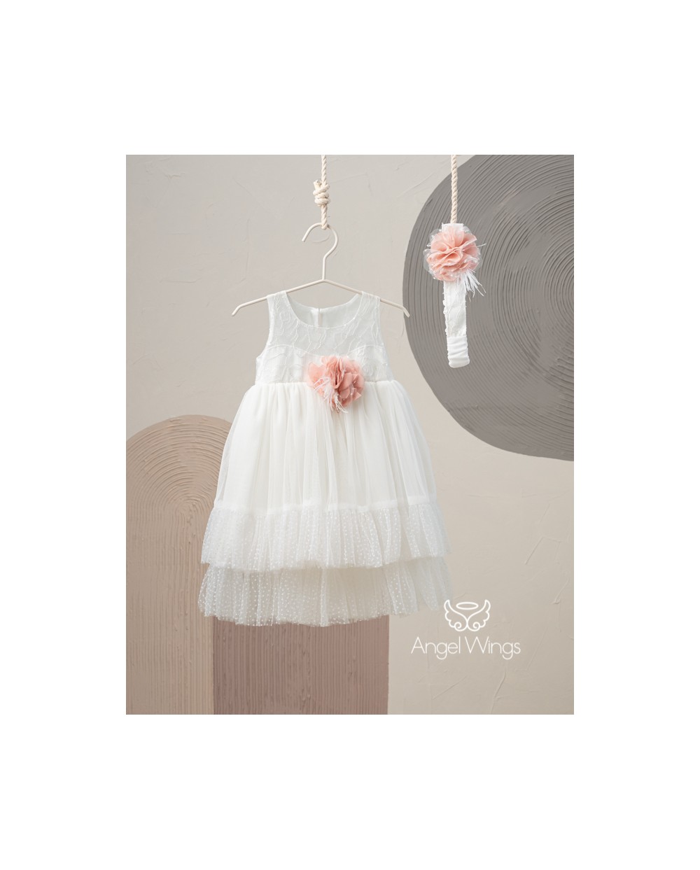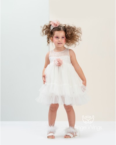 Angel Wings 228 Vicky Off White Βαπτιστικό Ρούχο για Κορίτσι