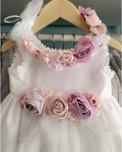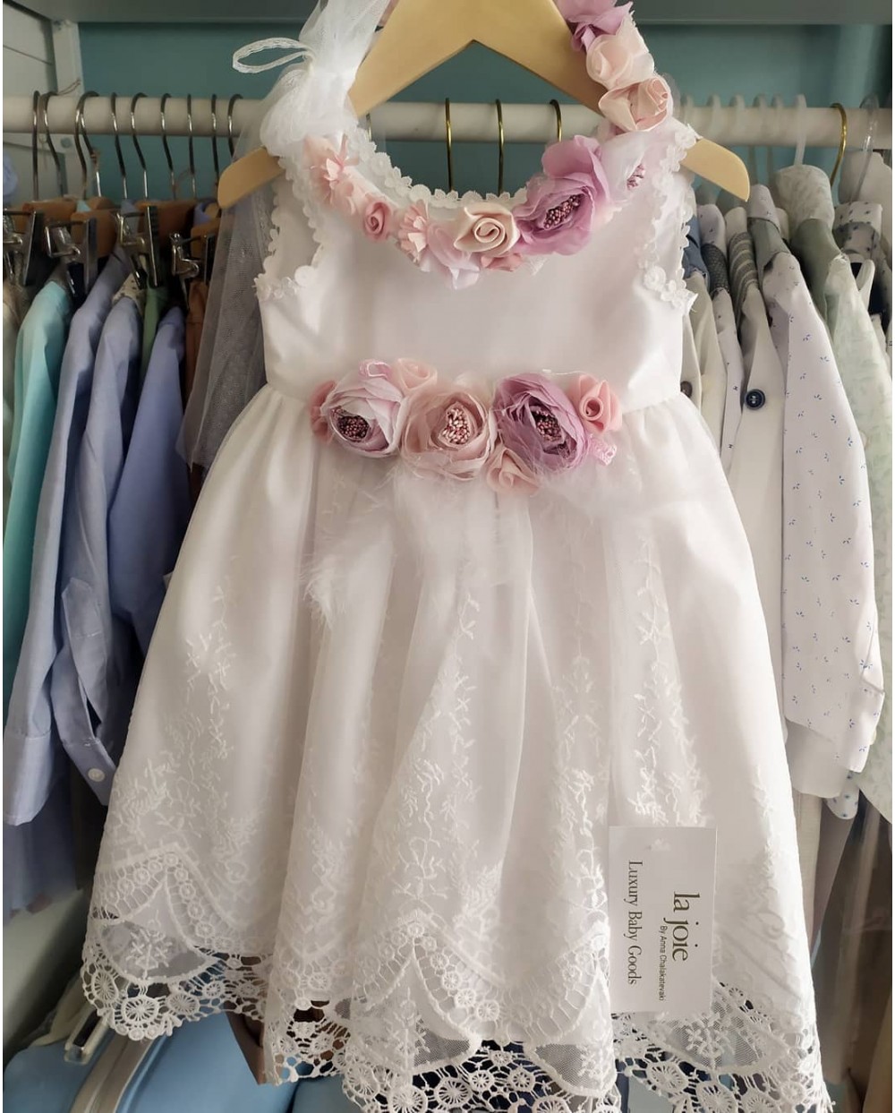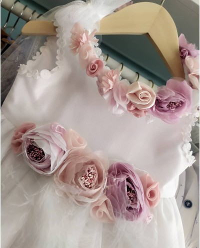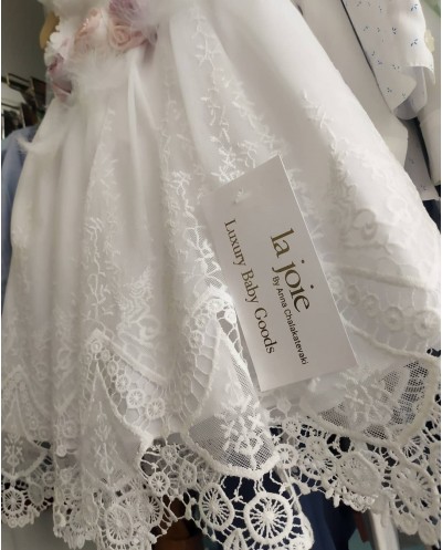 La Joie - Βαπτιστικό Φόρεμα 200820 με ασορτί στεφανάκι