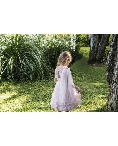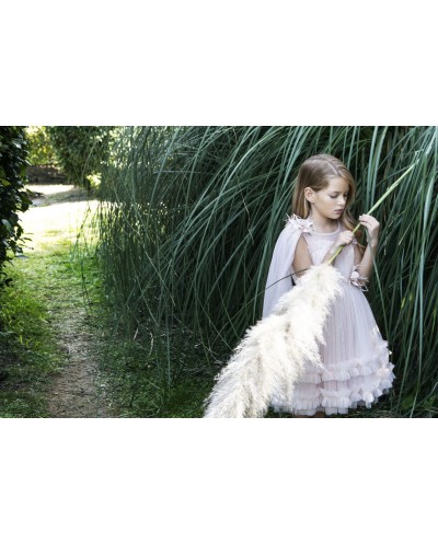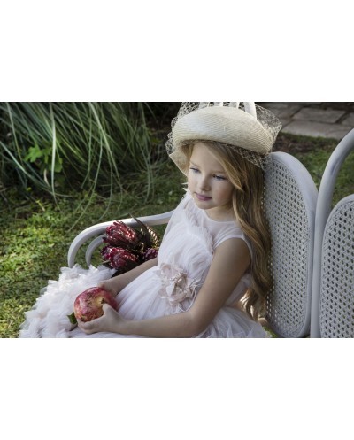 Ένα χαρακτηριστικό φόρεμα της συλλογής Printemps 2023 , σε σομόν απόχρωση με ιδιαίτερο τούλινο βολάν στο τελείωμα της φούστας. Το μπούστο στολίζει μια τρέσα με διάφανα κρυσταλλάκια και τον ένα ώμο του φορέματος τον διακοσμεί ένα τούλινο πέπλο στην ίδια απόχρωση . Εσωτερική επένδυση από μαλακό βαμβακερό ύφασμα . Ασορτί κορδέλα με το ίδιο λουλούδι του φορέματος και κατ’ επιλογή μπαντάνα ή τουρμπάνι .