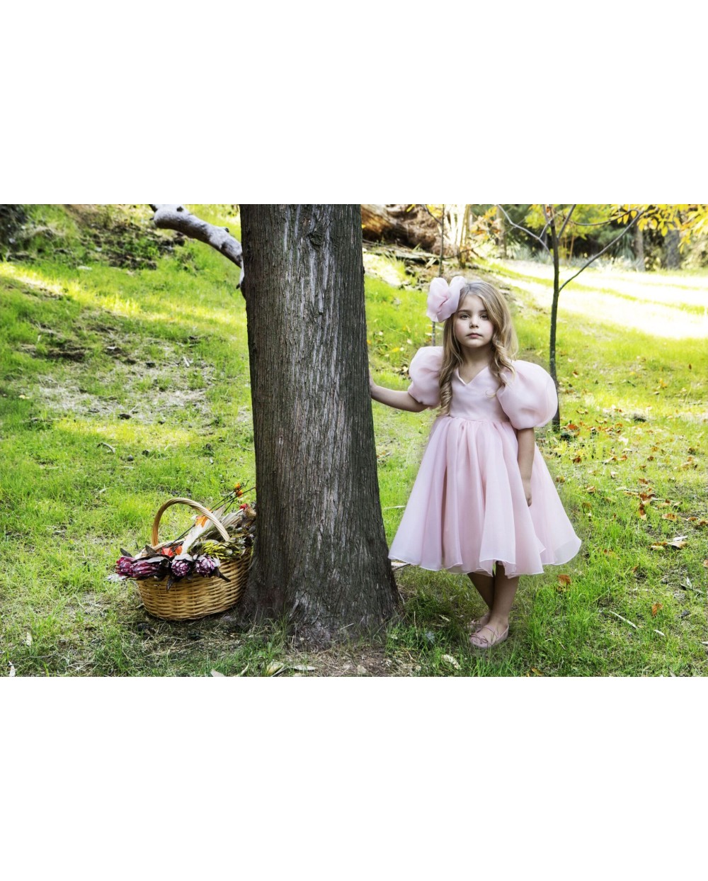 Ένα πολύ ρομαντικό φόρεμα από οργαντίνα σε dusty pink απόχρωση . Αέρινη φούστα , και ιδιαίτερα μανίκια χαρακτηρίζουν το συγκεκριμένο φόρεμα της συλλογής Printemps 2023 . Η εσωτερική επένδυση του φορέματος αποτελείται από μαλακό βαμβακερό ύφασμα.