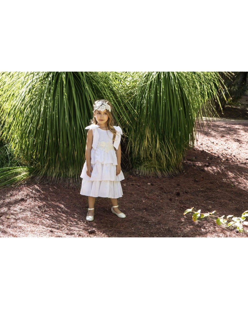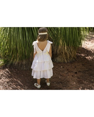 Minimal φόρεμα Βάπτισης Baby Bloom από τη συλλογή Printemps 2023 , σε λευκή απόχρωση . Η κομψότητα του λινού σε συνδυασμό με βαμβακερές τρέσες δημιουργούν ένα chic αποτέλεσμα. Φιόγκους στους ώμους και βολάν στη φούστα ολοκληρώνουν αυτό το εκπληκτικό φόρεμα . Ασορτί κορδέλα με το ίδιο λουλούδι του φορέματος κατ’ επιλογή μπαντάνα ή τουρμπάνι .