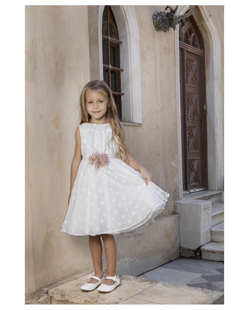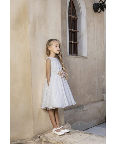 Το βαπτιστικό φόρεμα Baby Βloom της συλλογής stile di vita mediterraneo 2024 είναι ένα κομψό φόρεμα από την σειρά σταθερών υφασμάτων,από ιδιαίτερο βαμβακερό ύφασμα με ανάγλυφα λουλούδια στην ύφανσή του. Στην μέση του φορέματος υπάρχει τρέσα και χειροποίητη σύνθεση λουλουδιών που την στολίζουν. Εσωτερικά υπάρχει επένδυση από μαλακό βαμβακερό τούλι.