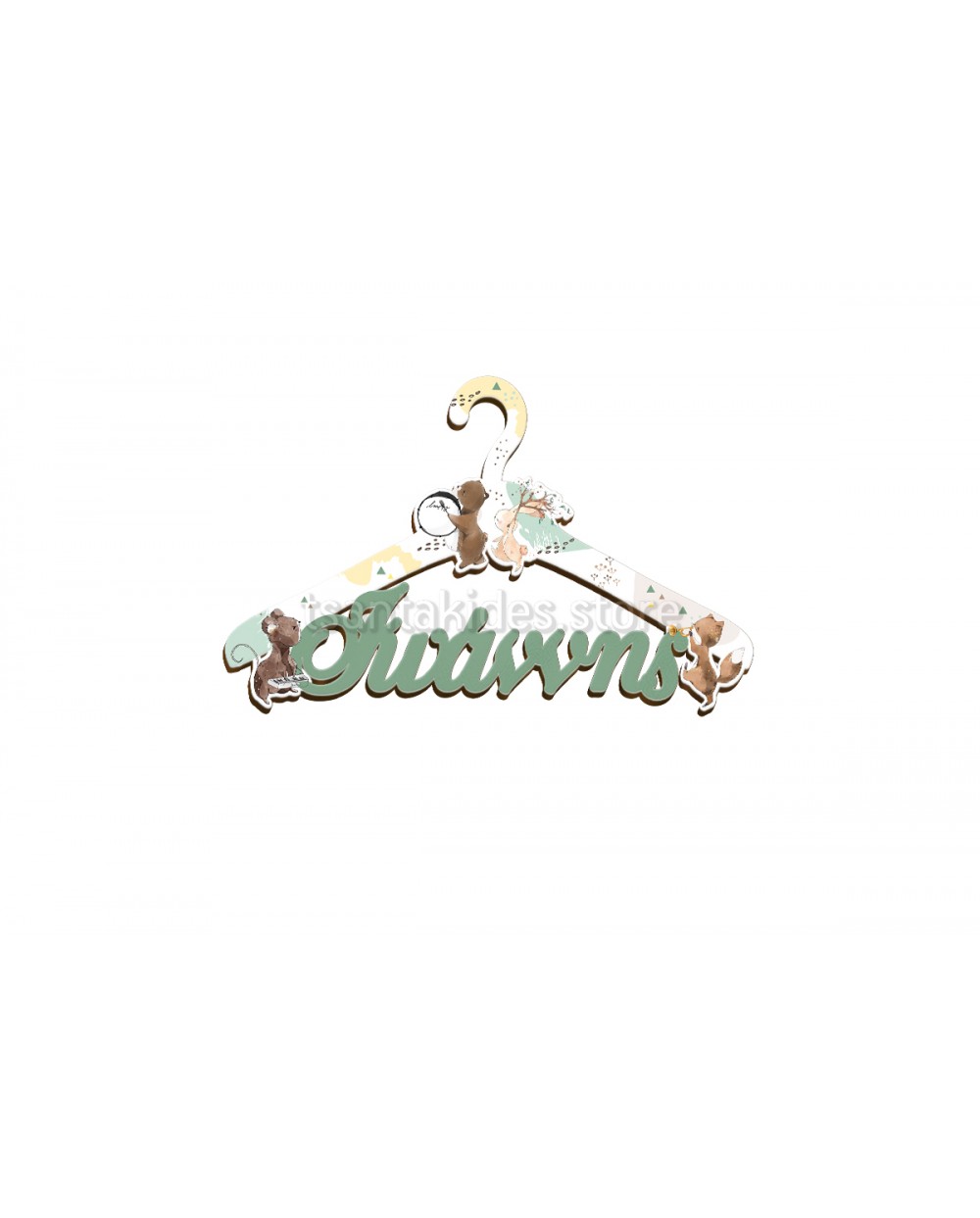 Ξύλινη Κρεμάστρα για τα Ρούχα της Βάπτισης Ζωάκια Δάσους - TS288